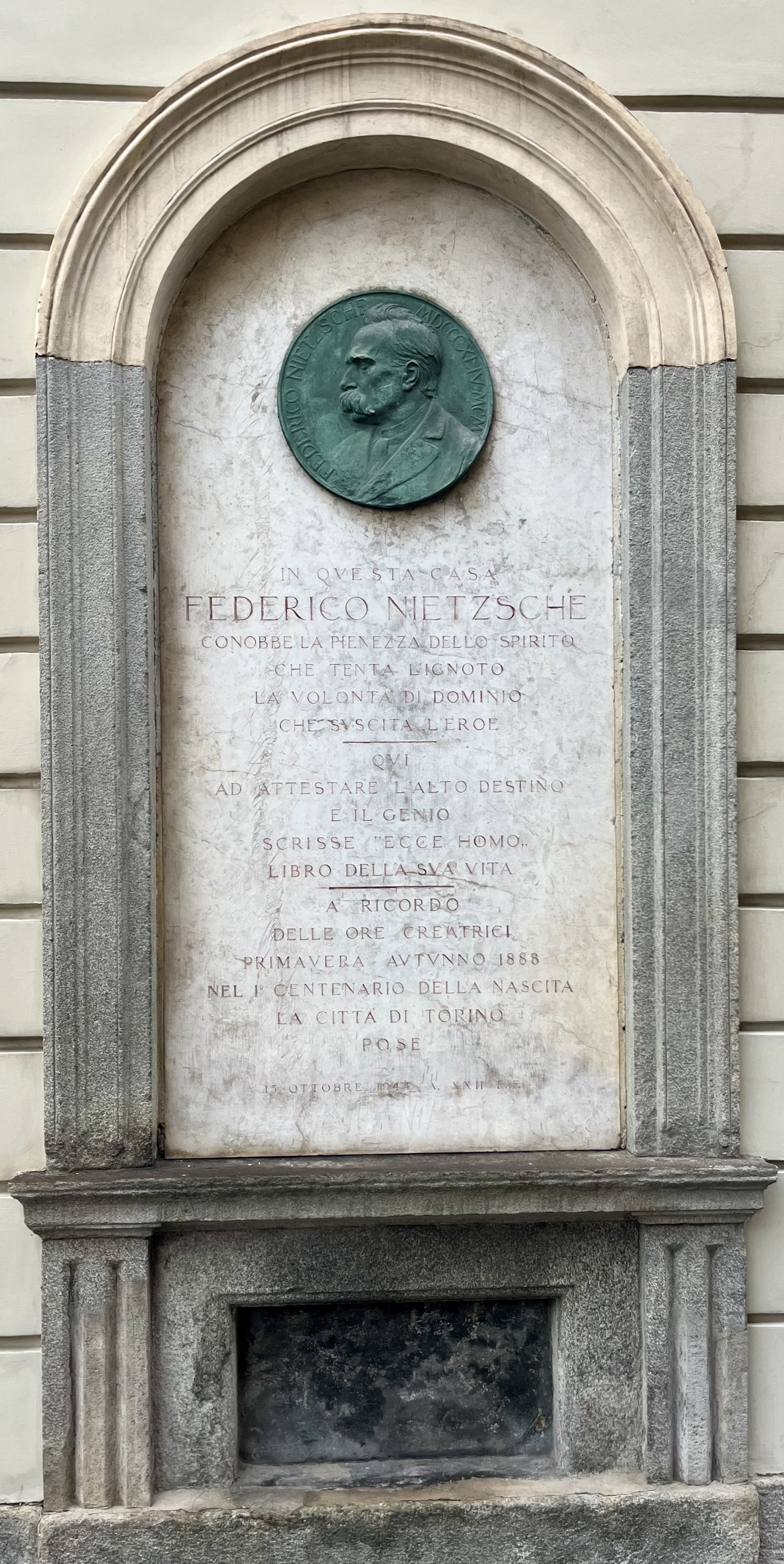 Uiteindelijk arriveert hij in april 1888 in Turijn – de 'eerste stad waar ik mogelijk ben' (p.87). Na de bekende scène met het omhelzen van het paard, wordt hier de breuk met Wagner uiteindelijk compleet, begint hij met de hamer te filosoferen, en komt zijn krankzinnigheid volledig naar voren; hij loopt rond door de straat, slaat toevallige passanten op de schouder en vraag 'Siamo contenti? Son Dio – ho fatto questa caricatura' (p.92).
