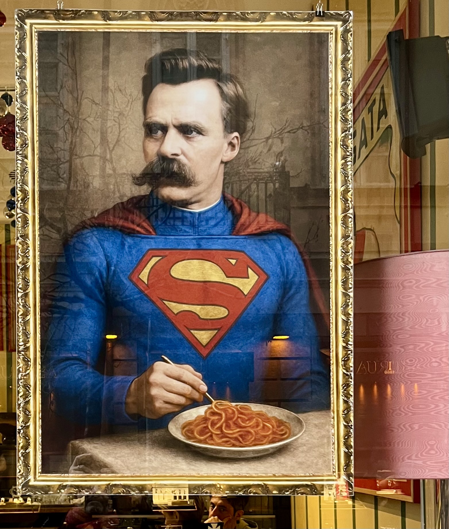 Tijdens de bespreking van Vrij Spel (het vijfde boek dat we met onze boekenclub lazen), kreeg ik van collega J dit aardige boekje over Nietzsche. Het was uit haar boekenkast gevallen toen deze in verband met de beperkte ruimte in haar woning opgeruimd moest worden. Het was een fijn verjaardagscadeau, hoewel J dat op dat moment niet wist.