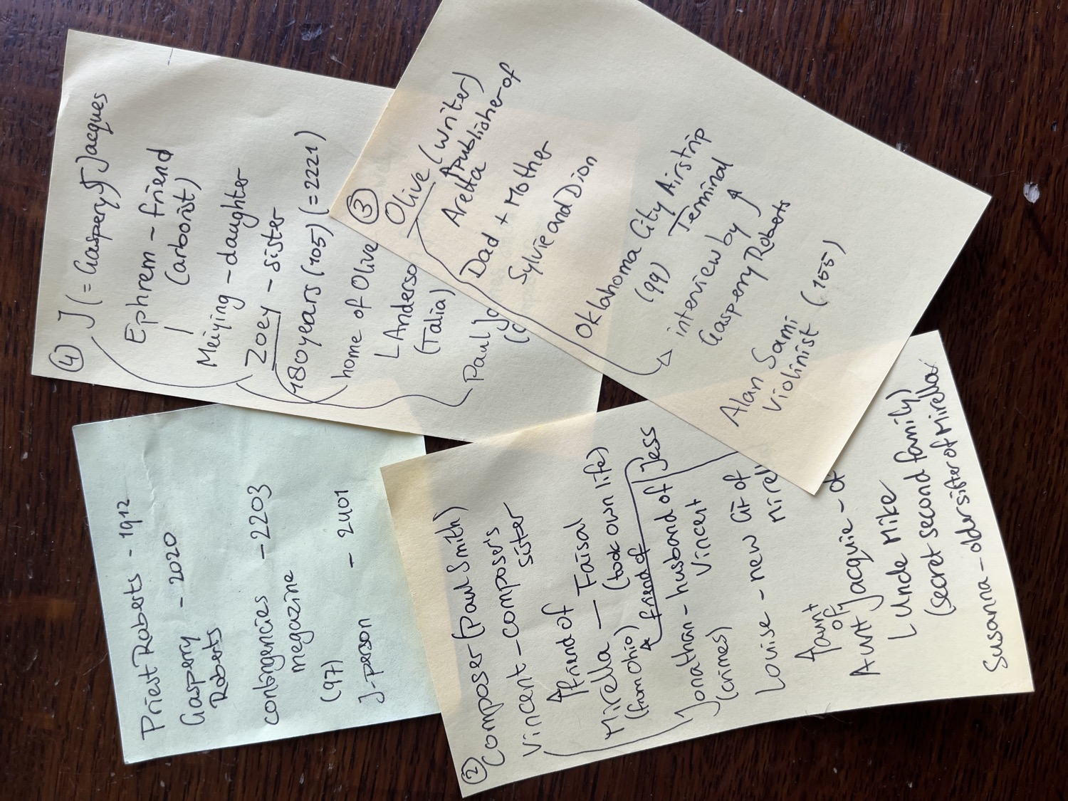 Het is wat irritant dat er wel érg veel personages worden geïntroduceerd die verder nauwelijks een rol in het geheel vervullen. Ik ben al vrij snel begonnen met notities maken van namen en verhoudingen, omdat ik van mezelf weet dat ik daar slecht in ben én omdat ik al vroeg vermoedde dat die namen nog wel eens terug zouden kunnen komen.